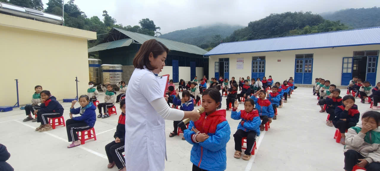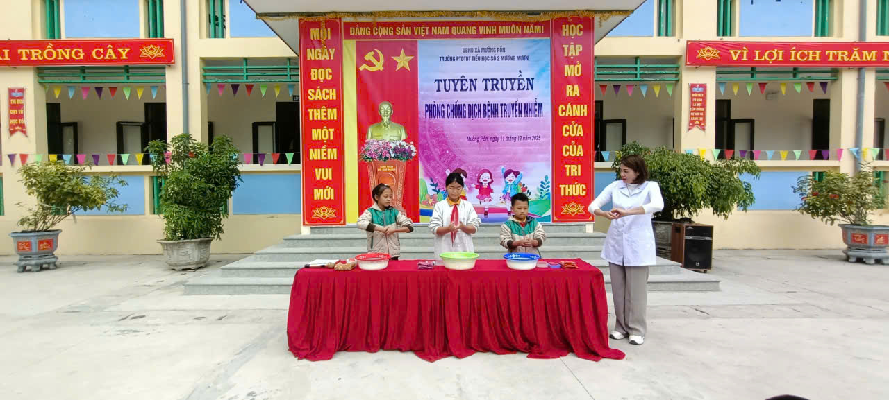 Học sinh thực hành rửa tay