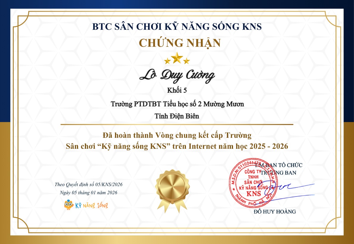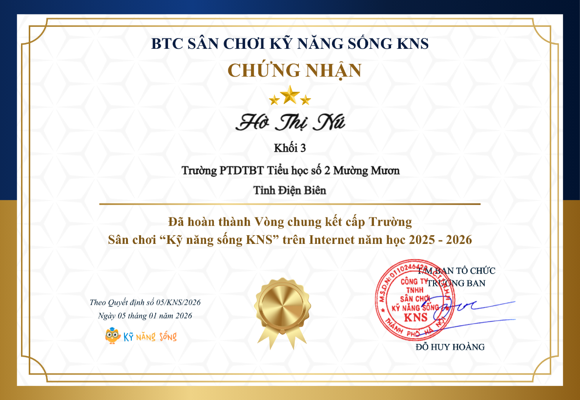Học sinh trường PTDTBT Tiểu học số 2 Mường Mươn đạt giải cuộc thi Tiếng Anh qua mạng Internet (IOE) cấp huyện năm học 2024-2025.