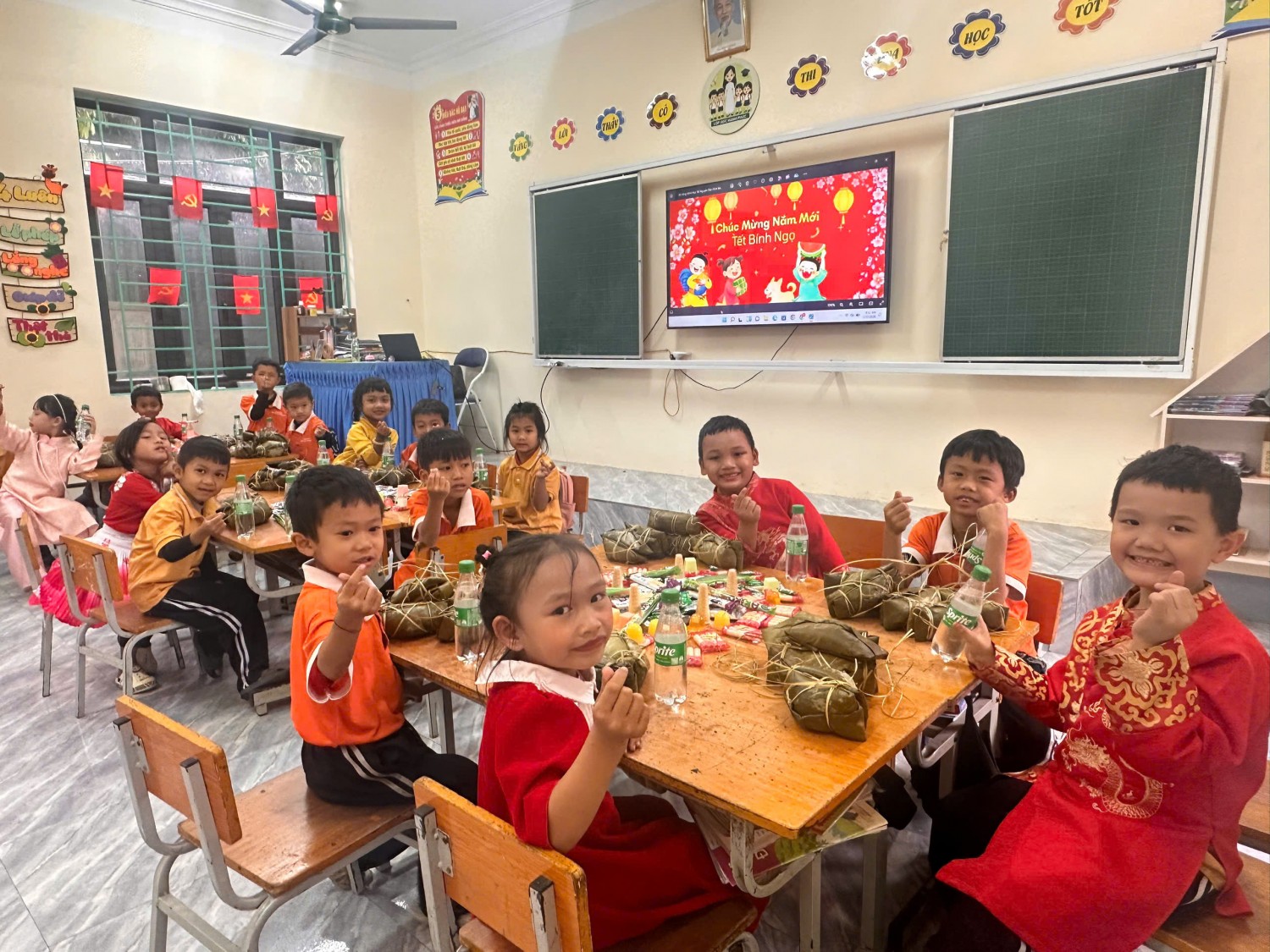 Bên cạnh hoạt động gói bánh chưng, chương trình còn được tô điểm bằng các tiết mục văn nghệ mừng xuân, những bài hát, điệu múa vui tươi do chính các em học sinh biểu diễn, tạo nên không khí phấn khởi, đoàn kết, tràn ngập sắc xuân trong khuôn viên nhà trường.