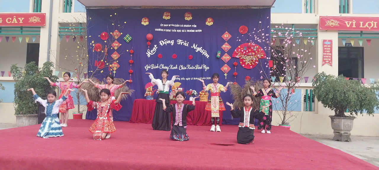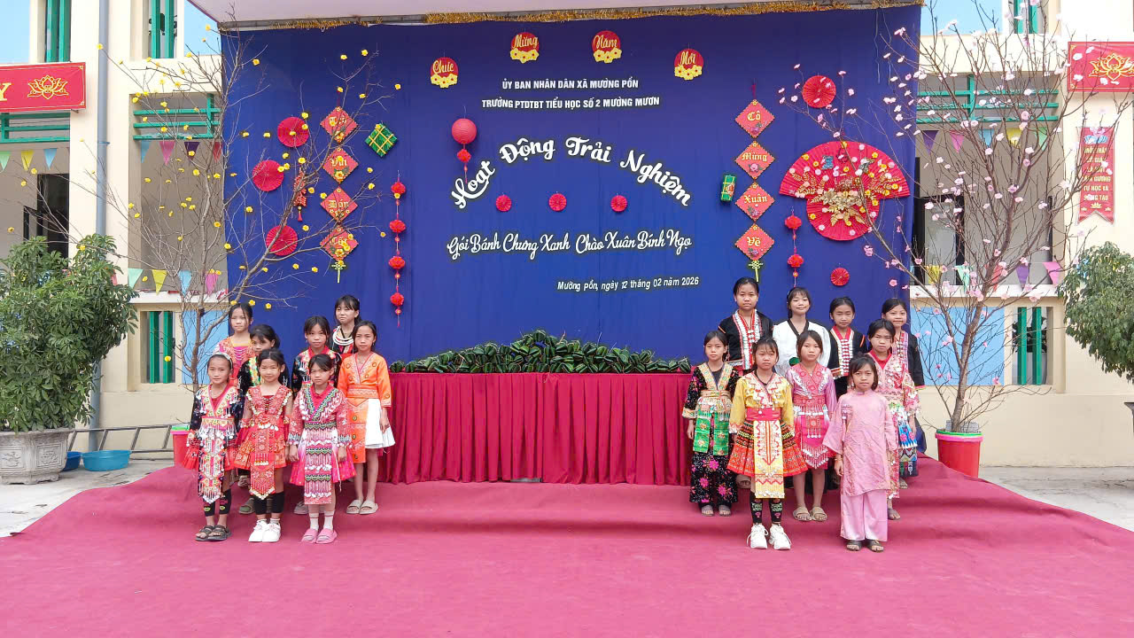 Trong không khí rộn ràng đón chào Xuân Bính Ngọ, Trường PTDTBT Tiểu học số 2 Mường Mươn đã tổ chức hoạt động trải nghiệm với chủ đề “Gói bánh chưng xanh – Chào xuân Bính Ngọ” dành cho học sinh toàn trường. Hoạt động diễn ra trong không khí vui tươi, ấm áp, đậm đà bản sắc văn hóa dân tộc, thu hút sự tham gia tích cực của giáo viên, học sinh và phụ huynh, góp phần mang mùa xuân đến gần hơn với các em học sinh nơi vùng cao còn nhiều khó khăn.