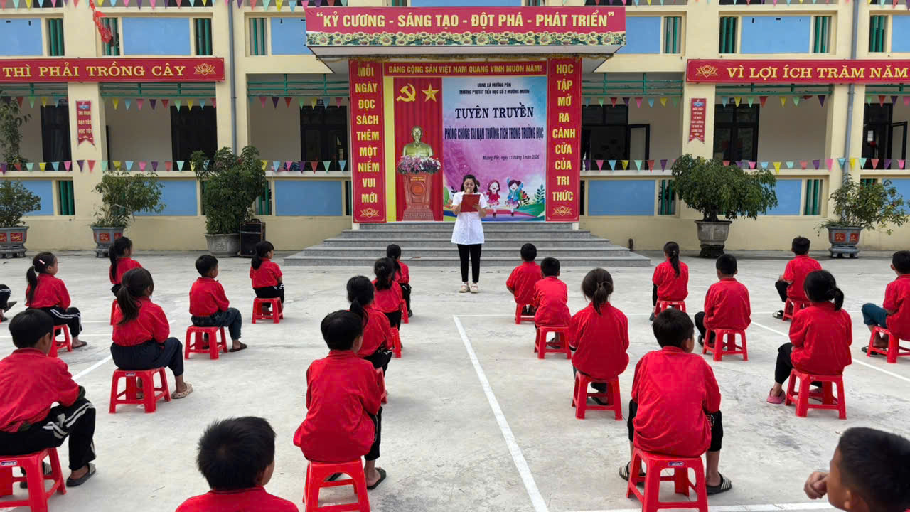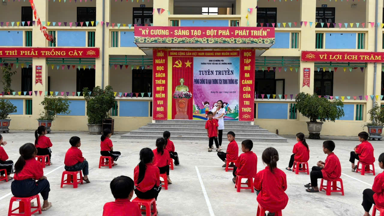 Nhằm nâng cao nhận thức và kỹ năng phòng tránh tai nạn thương tích cho học sinh, góp phần xây dựng môi trường học đường an toàn, thân thiện. Chiều ngày 11 tháng 3 năm 2026 Trường PTDTBT Tiểu học số 2 Mường Mươn đã triển khai đến toàn thể cán bộ giáo viên, nhân viên và các em học sinh trong toàn trường về phòng chống tai nạn thương tích trong trường học năm học 2025 – 2026.